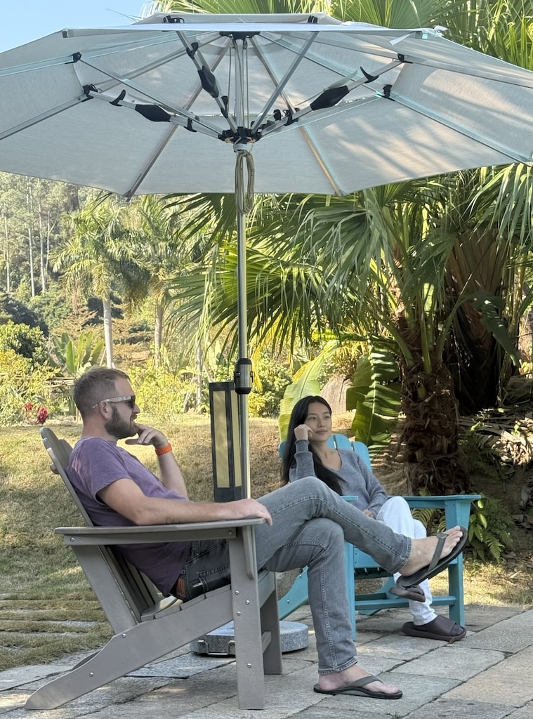 There’s something about the way this umbrella elevates a simple afternoon outside. On warm days, I love sitting beneath it with a book, feeling that subtle airflow while my phone charges quietly next to me. It’s the kind of comfort that used to only exist at high-end resorts or beachfront lounges, but now I can have it right on my patio.
