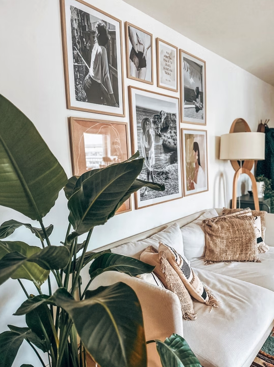 Color is not only something that pleases the eye, it even forms emotion, atmosphere, and even memory. Color may be able to bind together various works in a single theme when applied wisely in the elements of the wall. In either the case of your space having family photos, snapshots of the places you have traveled to, or prints of modern art, organizing them by color can help create flow and balance.