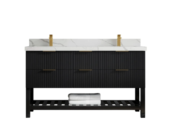 The Catalina doesn’t whisper luxury; it states it with confidence. Crafted by Willow Bath and Vanity, this 60-inch double vanity pairs architectural reeded detailing with real, performance-grade materials—making it one of the most complete double-sink options on the market.
